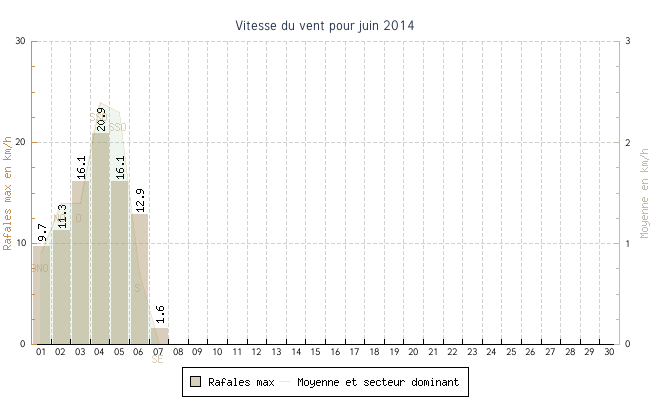 | min | max | moy | Vitesse (rafales) | Secteur | ||